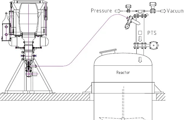 Powder is extracted and introduced into the reactor or any other receiving system by means of the PTS, maintaining high levels of containment at all times.