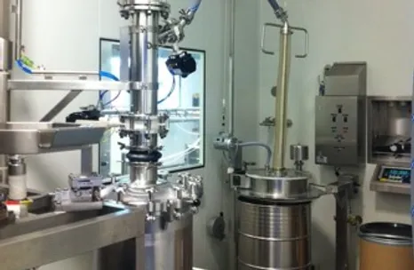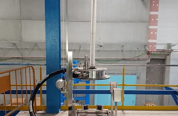 ​A suction lance, integrated and sealed onto the system by bellows, allows the operator to draw the powder from the drum by using PTS Powder Transfer System®.