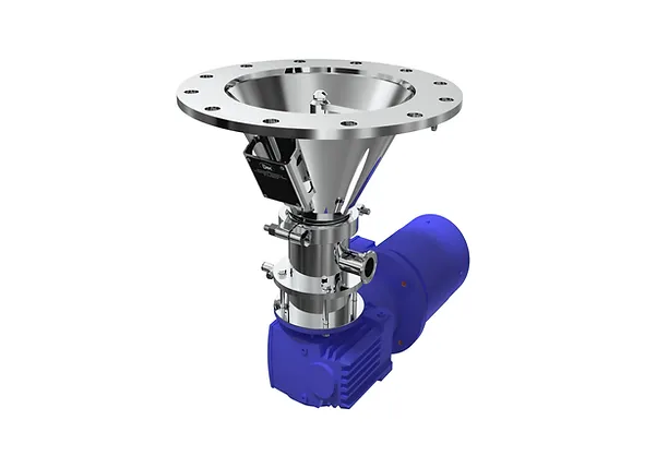 It is equipped with a tool which breaks bridges and lumps to provide a constant powder flow. The system with its limited height is easily installed directly at the outlet of existing equipment such as dryers etc. with limited head space.