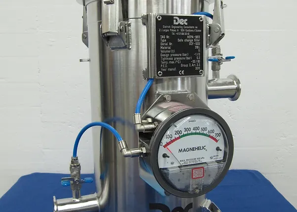 Dec has developed its own range a safety filters to be installed in the vacuum or the extraction line in order to prevent any particle migration and contamination of the utility line and to avoid the requirement of additional filtration systems.
