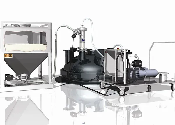For instance, the system can beconnected to and filled from a dispensing isolator or, powder can be charged into a reactor or any other process equipment from a few grams to some kilos.