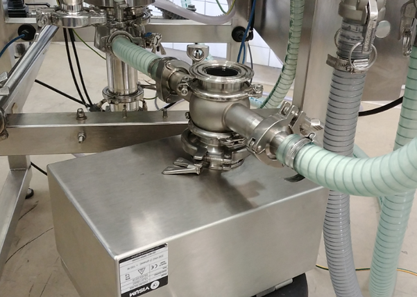 Combined with specific dosing valves in the transfer line controlled by the PTS system, it is feasible to have a fully automated dispensing system directly from the powder discharge stations or from the process equipment to be emptied.